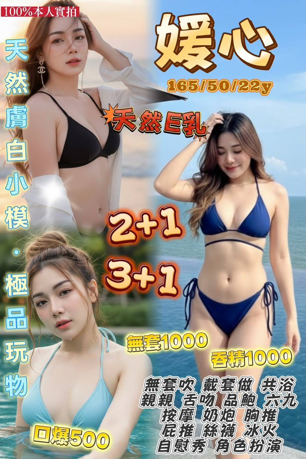 無套吹 戴套做 共浴 親親 舌吻 六九 按摩 奶炮 胸推 屁推 絲襪 冰火 自慰秀 角色扮演 兩龍一鳳