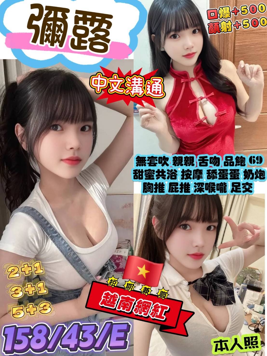 👍項目:無套吹/親親/舌吻/品鮑/69/甜蜜共浴/按摩/舔蛋蛋/奶炮/胸推/屁推/深喉嚨/足交