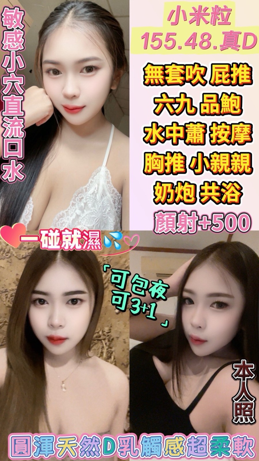 無套吹/共浴殘廢澡/親密KISS.舌吻(視個人衛生和妹妹現場感覺.自行開發)/共浴/六九/胸推/屁推/奶泡/按摩/品鮑/舔蛋/免費射後清槍